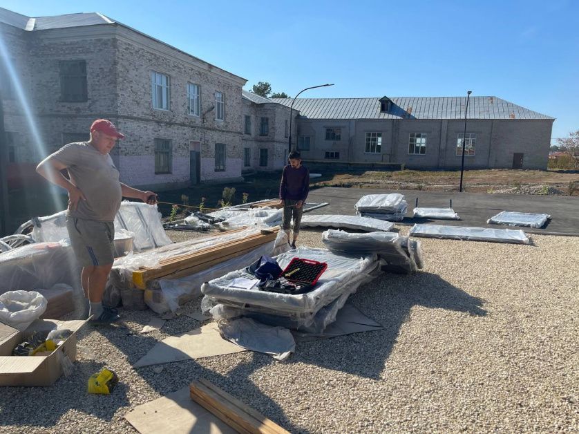 Сегодня началась установка детской площадки в Загорщине возле школы 2. Это последний проект текущего